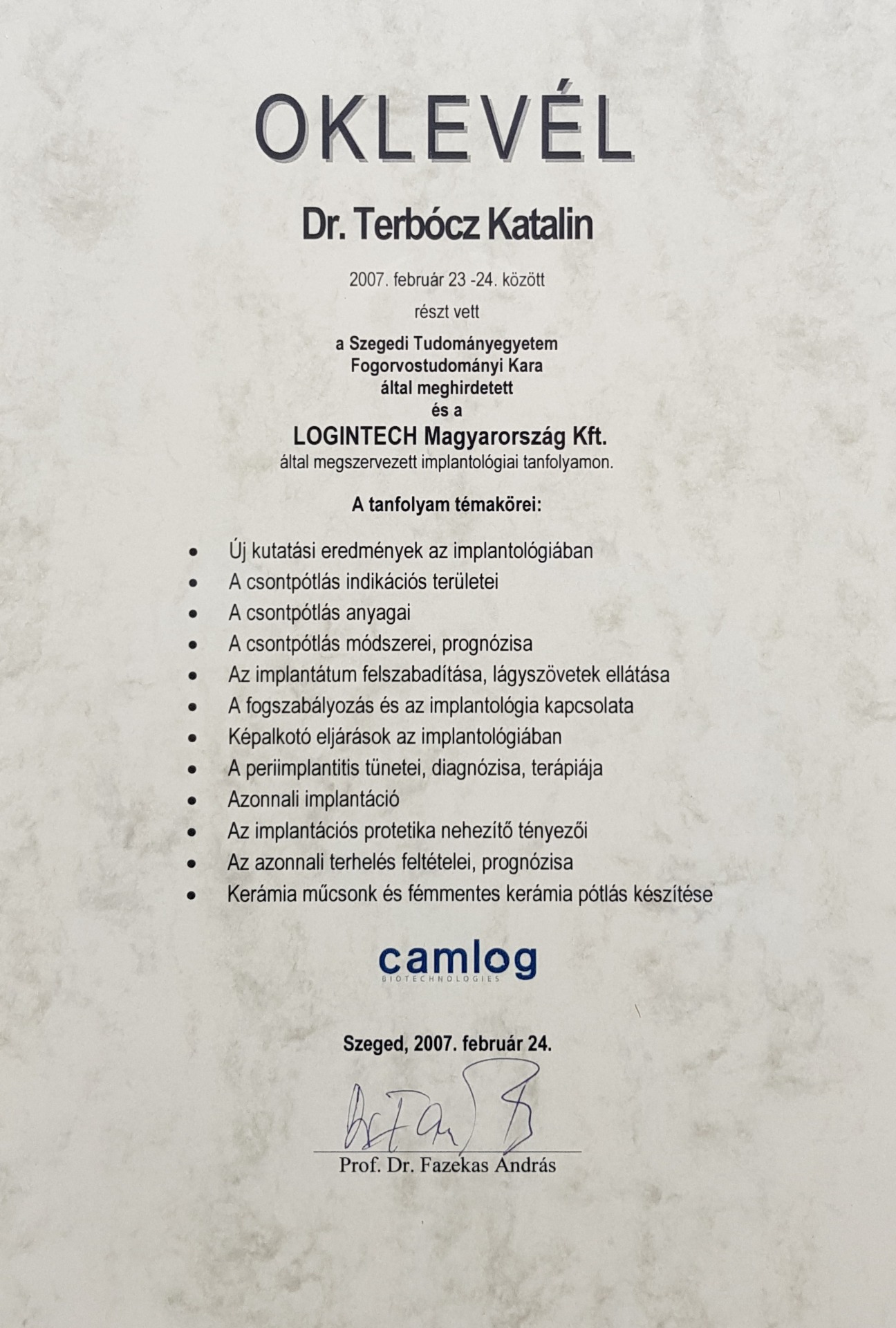 - 2007. "Expert in Operations- und Implantation" CAMLOG Implantationssystem (Deutschland)
