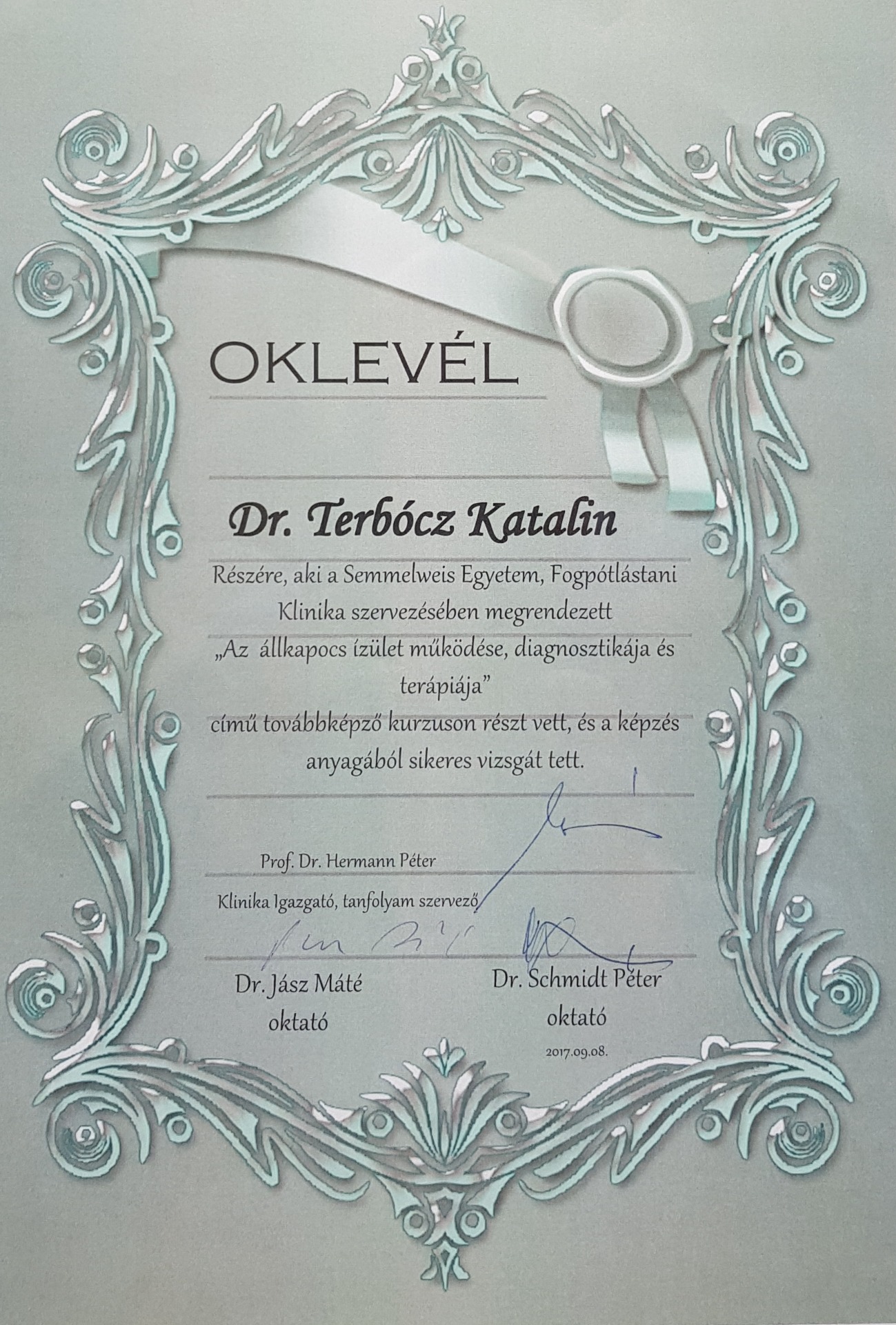 - 1990. SEMMELWEIS Medizinische Universität von Budapest, Cum Laude