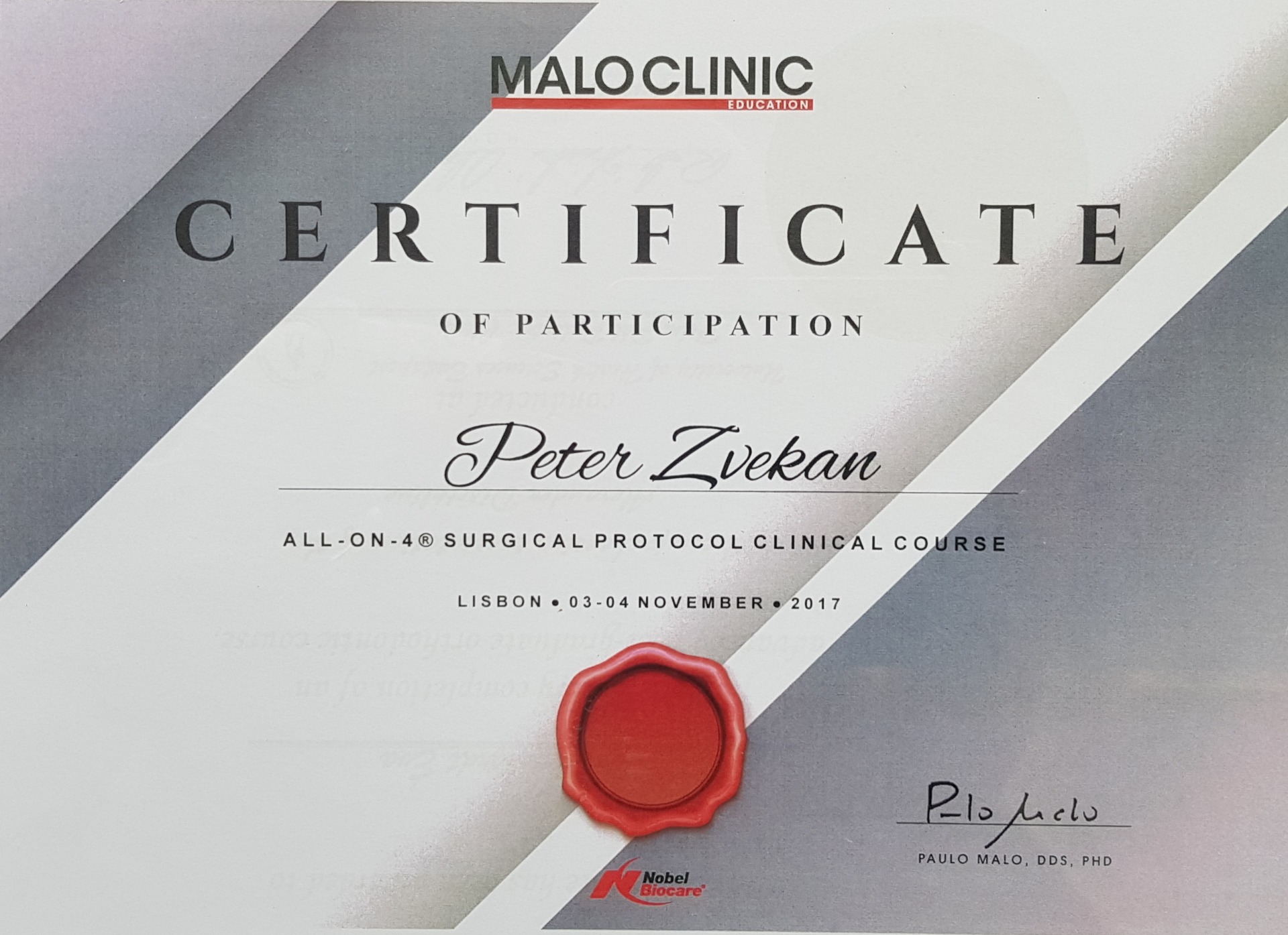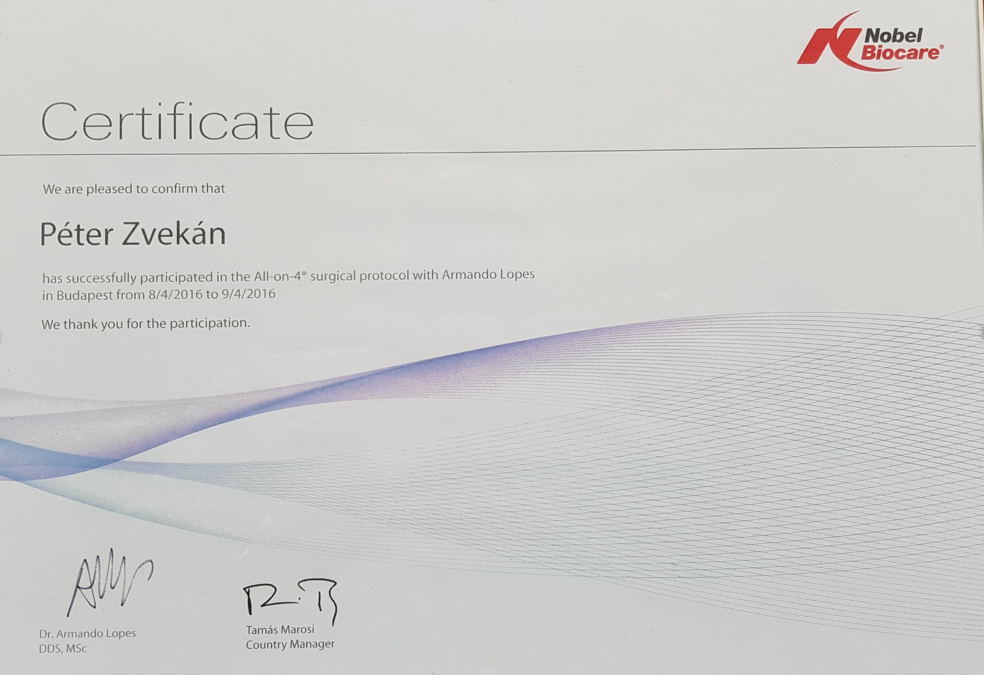 Advanced Surgical Workshop" - 2016. "Kurs für Implantation NobelBiocare"